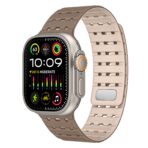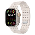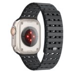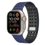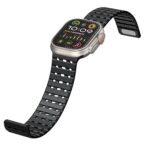 Experience double security and ultimate comfort with the AW Silicone Band Pro. A dual closure system combines magnetic attraction and pin-and-tuck fastening to keep your watch securely in place during intense activities. Its 26mm width and strategically placed holes allow for optimal airflow, keeping you cool during outdoor adventures.