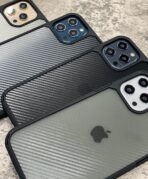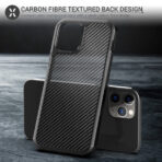 The Defence Shield Carbon case features a semi-transparent back with a sleek carbon fibre design, that subtly showcases the Apple logo and adds a premium look to your iPhone 12 Series.