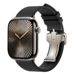Indulge in luxury and comfort with our Dressy Apple Watch Band. Crafted from soft, waterproof molded rubber, this band effortlessly contours to your wrist for a flawless fit.Plus, the convenient deployment buckle opens with just one simple click.Ćæ