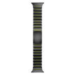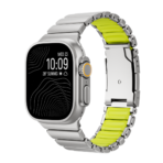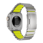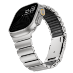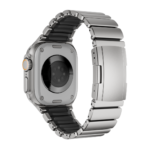 Combining the strength of Grade 5 titanium with the durability and flexibility of FKM, the Gemini Band is water-resistant, adventure-ready, and comfortable for all-day wear. Designed specifically for the Apple Watch Ultra, its polished, rounded titanium links and matte finish perfectly complement the watch?s titanium case for a refined yet durable look.