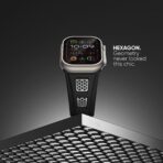 Designed with a tribute to high mechanics, the band blends both geometric and athletic aesthetics. The iconic hexagonal metal glows with a metallic sheen that?s highly reflective with every flick of your wrist..