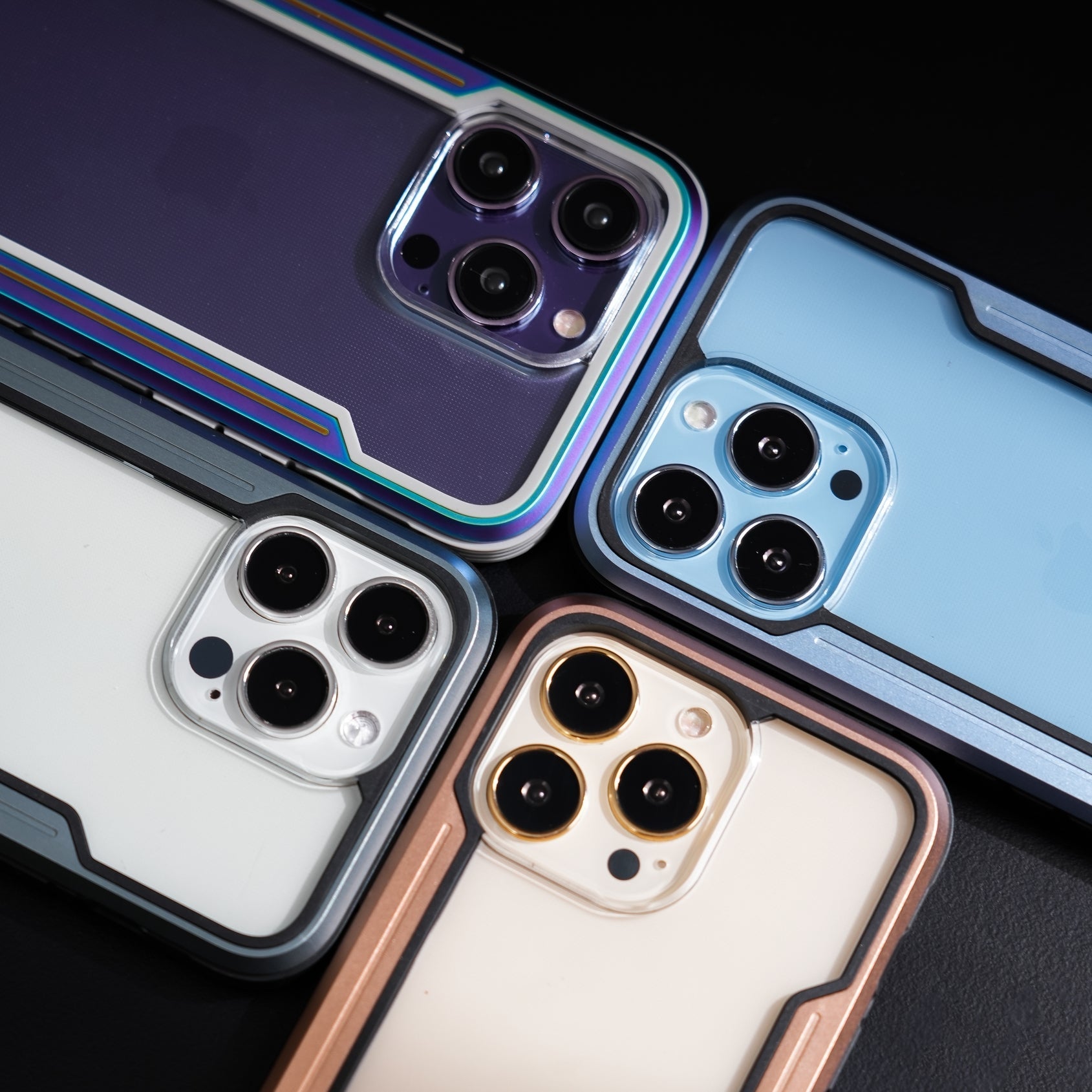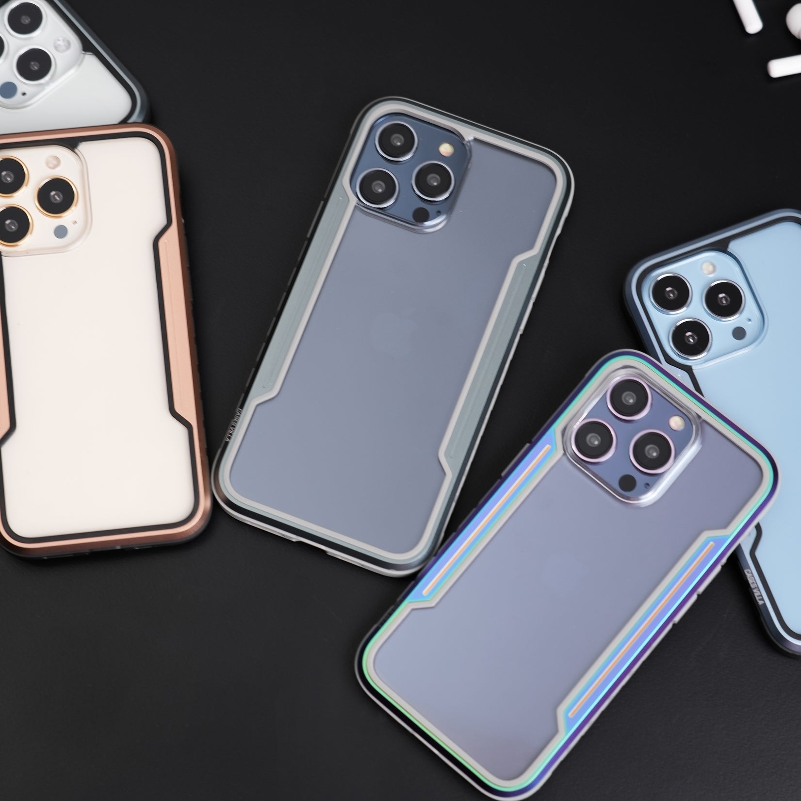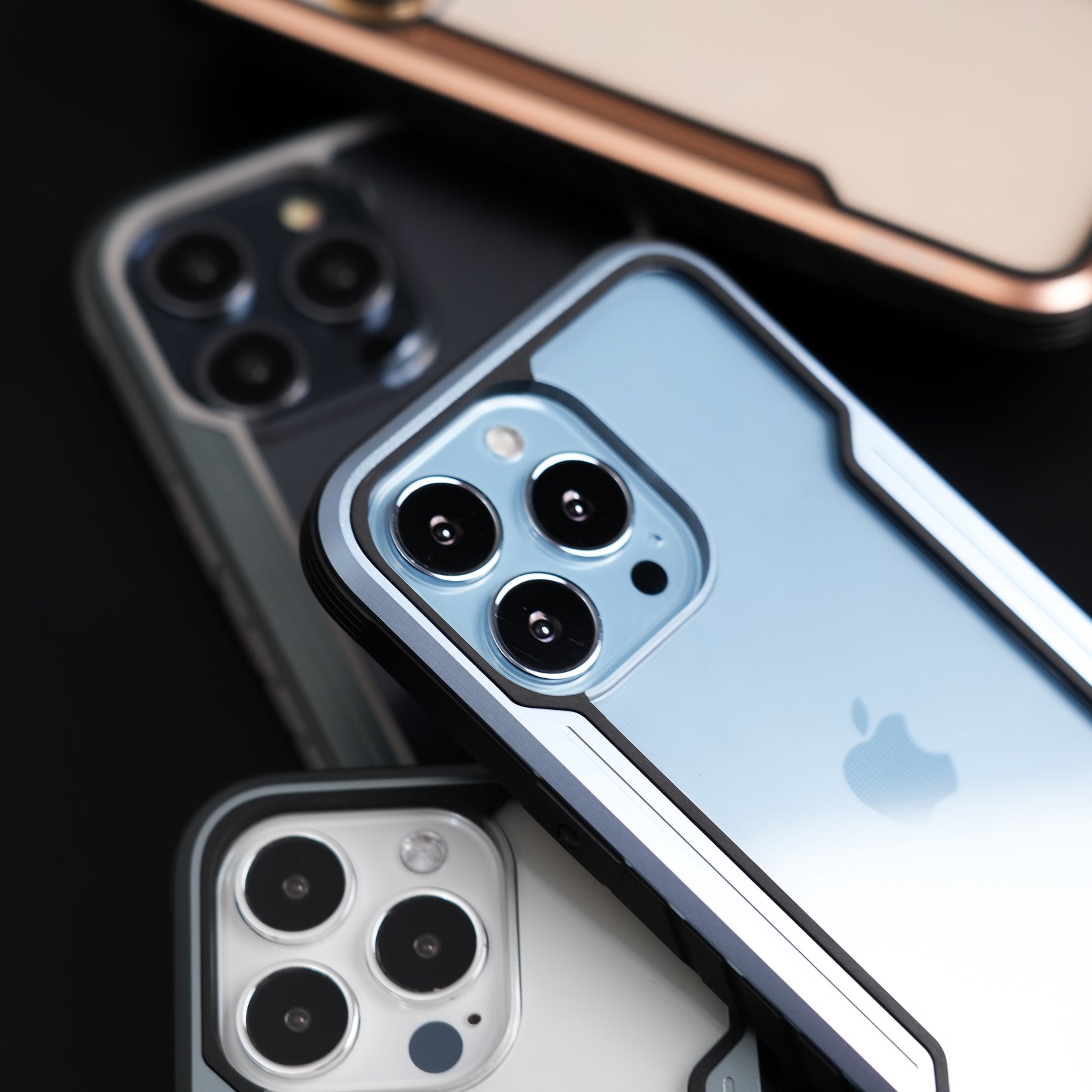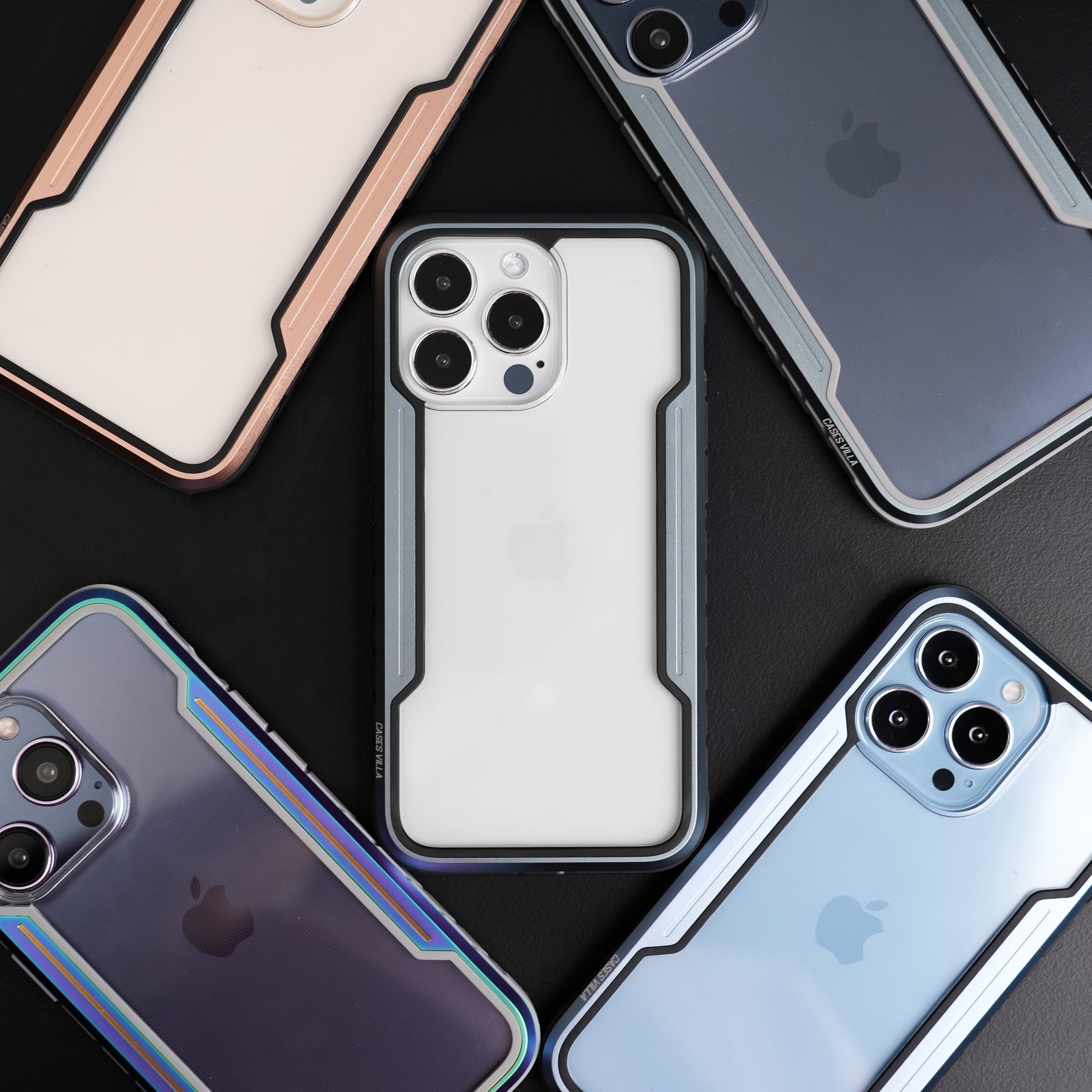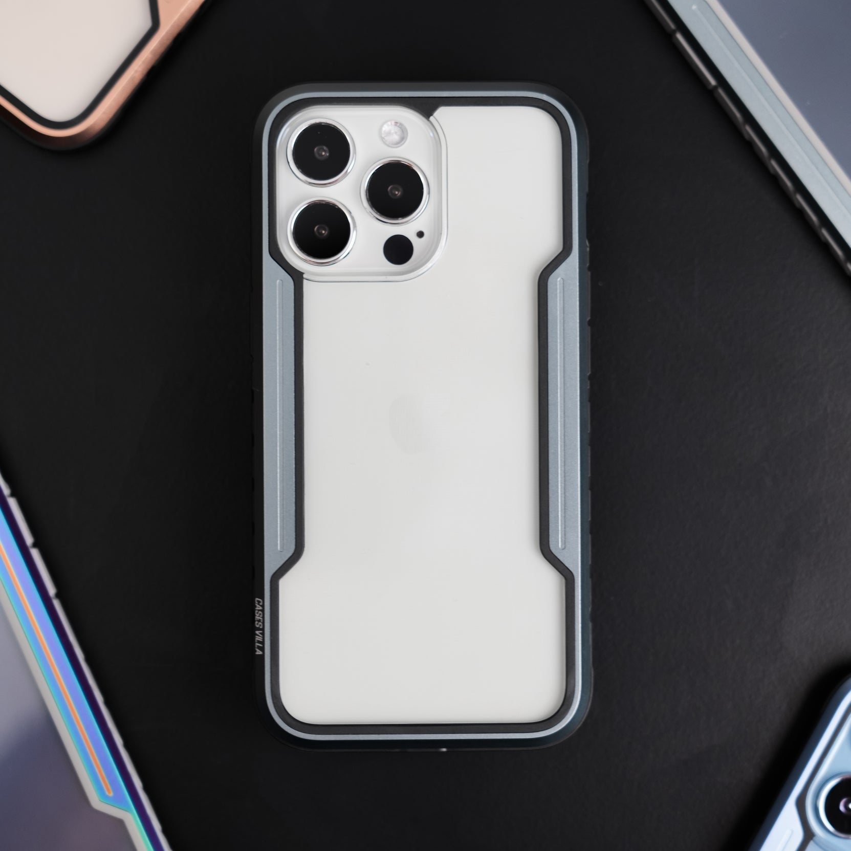 iPhone 13 & 14 Series Case – Black-Grey Defence Shield Metal Cover, Military Grade Protection.