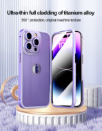 iPhone 13 Pro Max 360 Degree Cover of Ultra Thin Metal Titanium Alloy Material with Camera Lens Protection. Easy to Apply, comes with Screen protector and back titanium alloy panel.