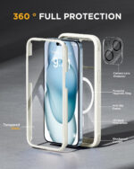 iPhone 15 – White COVER: 360° Protection Case 9H Tempered Glass Cover with MagSafe