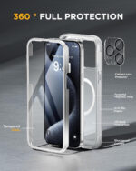 iPhone 15 Pro – Matte Clear COVER: 360° Protection Case 9H Tempered Glass Cover with MagSafe