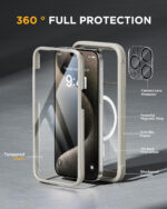 iPhone 15 Pro Max – Grey Titanium COVER: 360° Protection Case 9H Tempered Glass Cover with MagSafe