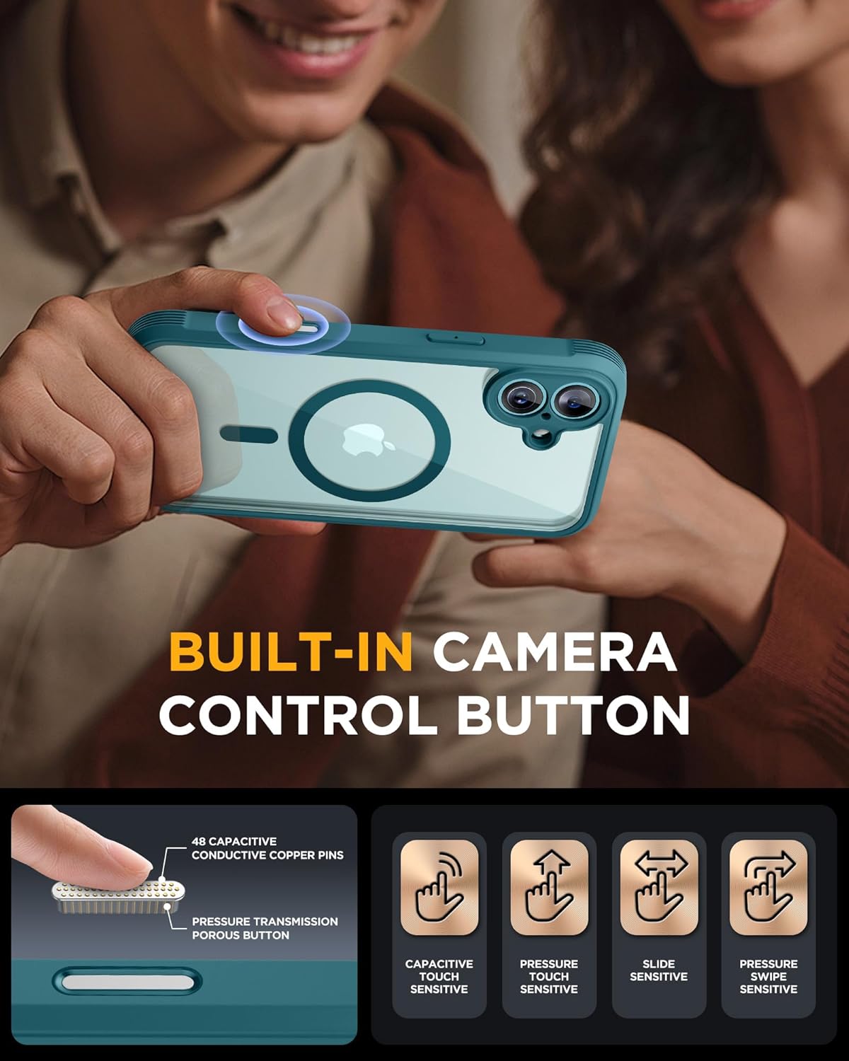 - [Military Full Body & Camera Protection] Unique camera control button ON-OFF design. Different from other brands’ direct hole-digging design. ‘s design focuses more on the overall protection of the phone, providing a more comfortable grip without affecting the use of camera control, simply open the cover to take photos. Military-grade 8000 times drop tested. Dual layer provides 360 grad full body rugged protection. Cushioned corners create enhanced security during drops and falls