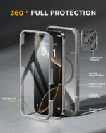 iPhone 16 Pro – Natural Titanium Grey COVER: 360° Protection Case 9H Tempered Glass Cover with MagSafe