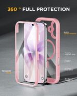 iPhone 17- PINK COVER: 360° Protection Case 9H Tempered Glass Cover with MagSafe