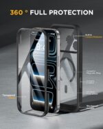 iPhone 17 Pro Max- Black COVER: 360° Protection Case 9H Tempered Glass Cover with MagSafe