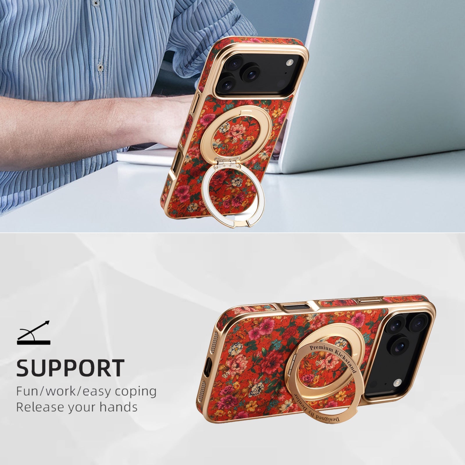 The Magnetic Electroplated Floral Case combines MagSafe strength, 360° kickstand freedom, and full camera protection — a true upgrade for your iPhone 17 series.